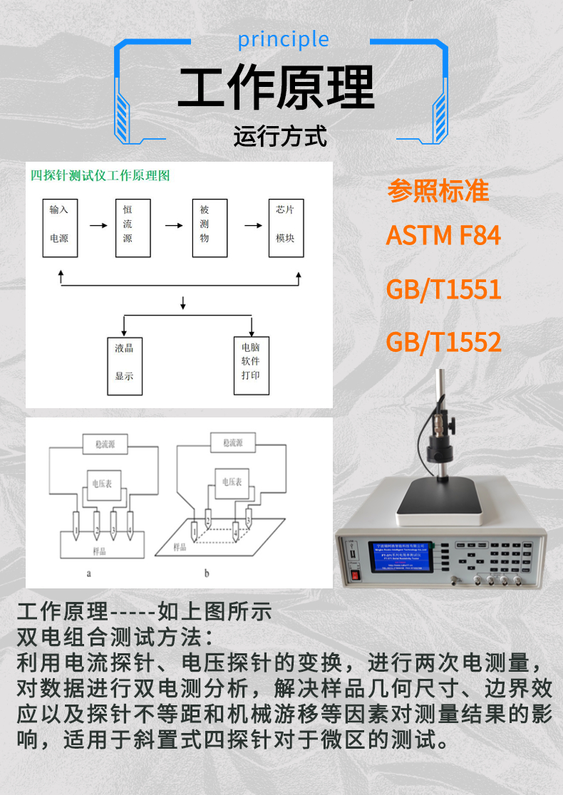 四點探針法,全自動化運行測量系統,可顯示:方阻、電阻率、顯示2D,3D掃描/數值圖、溫濕度值、提供標準校準電阻件. 報表輸出數據統計分析.